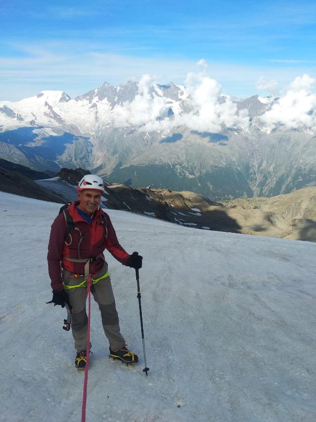 Ja a Suïssa, tots dos ascendírem en primer lloc l’Allalinhorn (4010 m.), preciós i fàcil quatremil, amb la fotogènica glacera Trift, a la qual s’accedeix en poc temps des de l’estació del telefèric que utilitzen els esquiadors durant tot l’any. En aquesta muntanya, només hi trobam alguna petita esquerda fàcilment salvable. Les vistes van ser espectaculars i l’activitat anava fent el seu efecte a la nostra aclimatació.