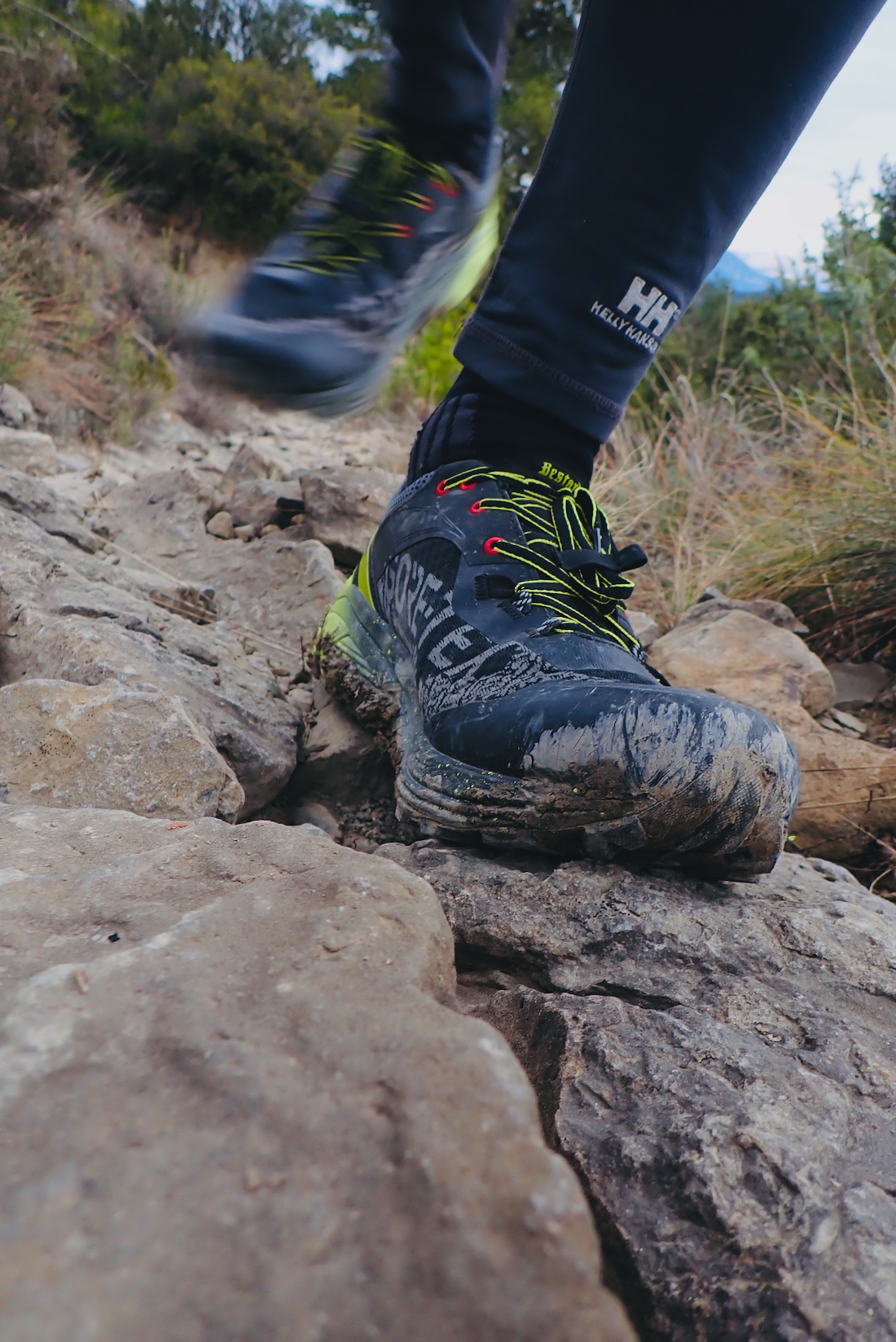 El perfil alt al calçat no és per a tothom, però en aquest cas el resultat és molt estable. A pista i camins he tingut bones sensacions en trotar a ritmes suaus o mitjans. I el drop alt realment resta tensió a la musculatura dels panxells. A més, aquesta considerable capa de material és la responsable d’una de les grans cartes de les Guepard: poder caminar i córrer sobre pedres punxegudes sense que la planta del teu peu les noti en absolut.