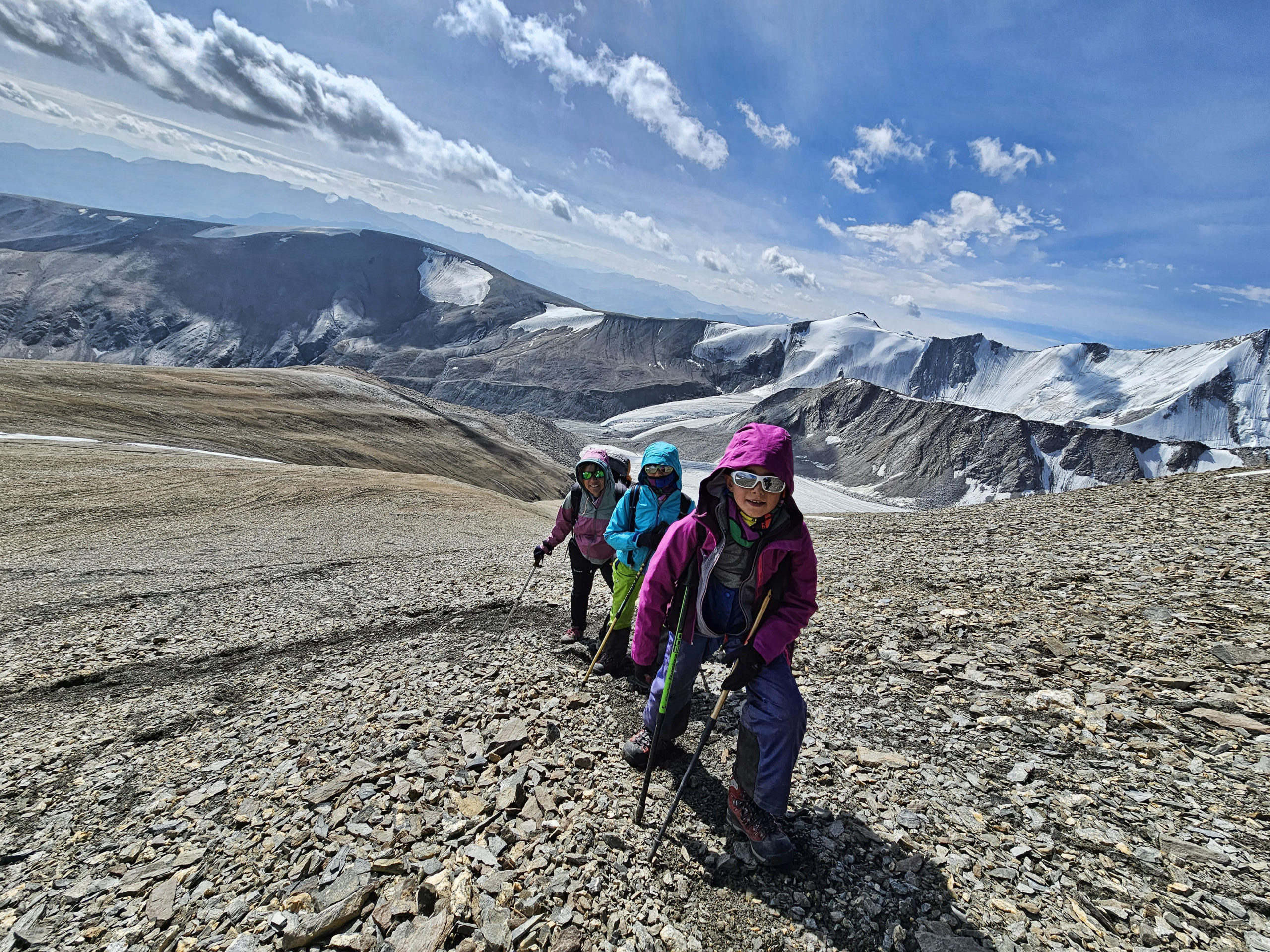 La perseverança dels nins va ser inqüestionable, la duresa de l’ambient era l’esperada pel fred, l’altitud i pendents forts a anar superant. No vam tenir cap problema amb l’aclimatació, encara que sí algun contratemps estomacal, però vam ser capaços de solucionar-ho, no així un dels components de Hippie in Hills que va haver de capgirar. Després d’una exigent ascensió vam aconseguir arribar al cim, un cim treballat des de feia anys i que ens va atorgar un moment de felicitat als quatre components de la família i en Gaurav, responsable d’Hippie in Hills, gran persona i suport durant tota l’expedició. De seguida canviàrem l’eufòria per tornar al nostre paper de pares, baixar a zona segura amb els més petits com més aviat millor.