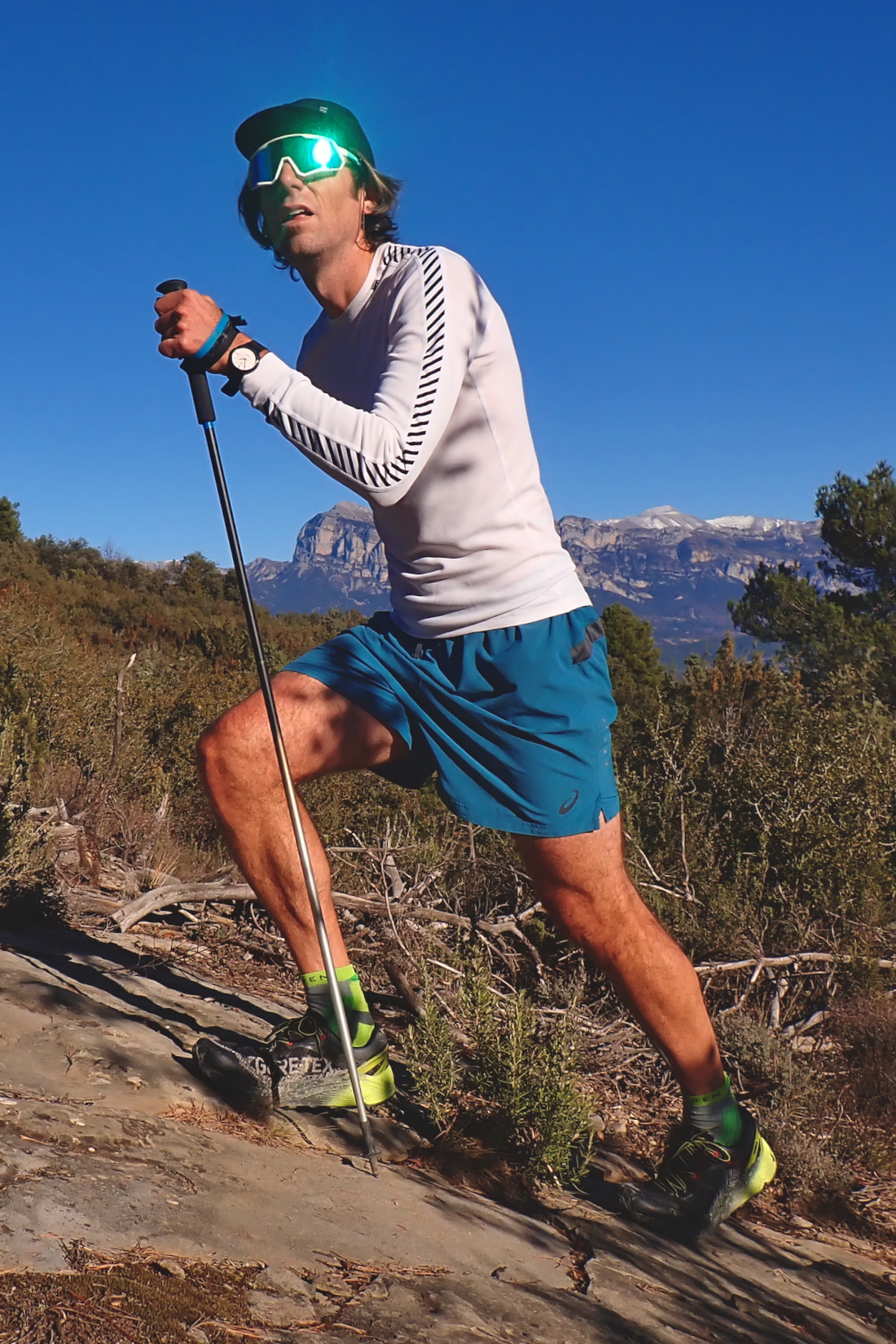 La siguiente salida fue también por firmes abruptos y empinados, pero a un ritmo más sosegado. Nos fuimos de pícnic hasta la panorámica cumbre de Nabaín. Caminando, las Guepard GTX ofrecen una pisada acolchada –pero no súper blanda– y un excelente agarre. Es una zapatilla muy apta para este tipo de actividad, aunque para sacarles partido, lo suyo es caminar rápido en subidas y, si apetece, dejarse llevar en las bajadas.