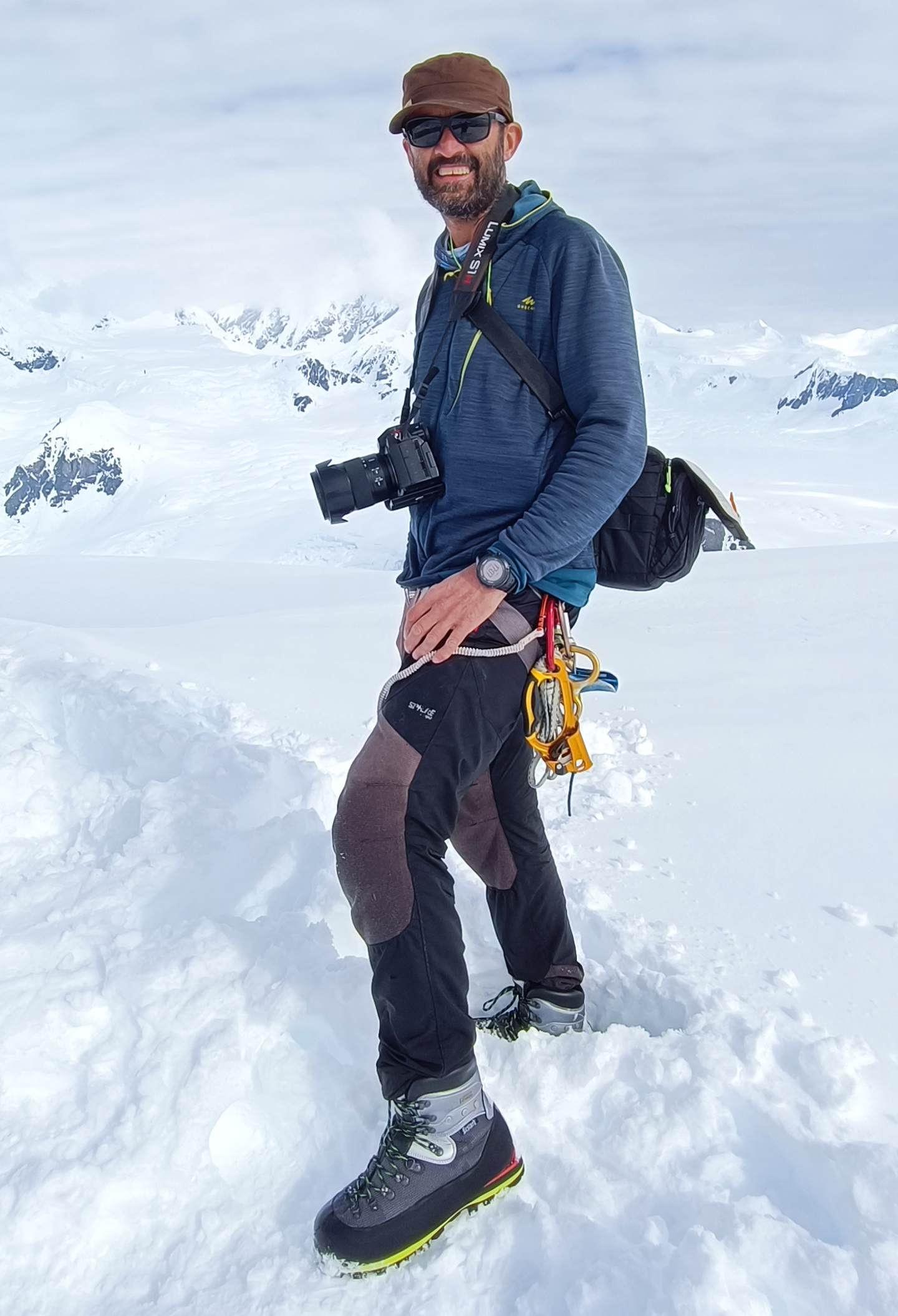 Como siempre, en el trabajo que desarrollo con mi cámara en alta montaña, además de realizar la actividad alpina tengo que concentrarme en realizar mi labor profesional con la mayor sensibilidad y eficacia posible. Una de las piezas clave en mi material es el calzado. Siendo de vital importancia proteger los pies a salvo de cualquier lesión y mantenerlos con el máximo confort posible.
