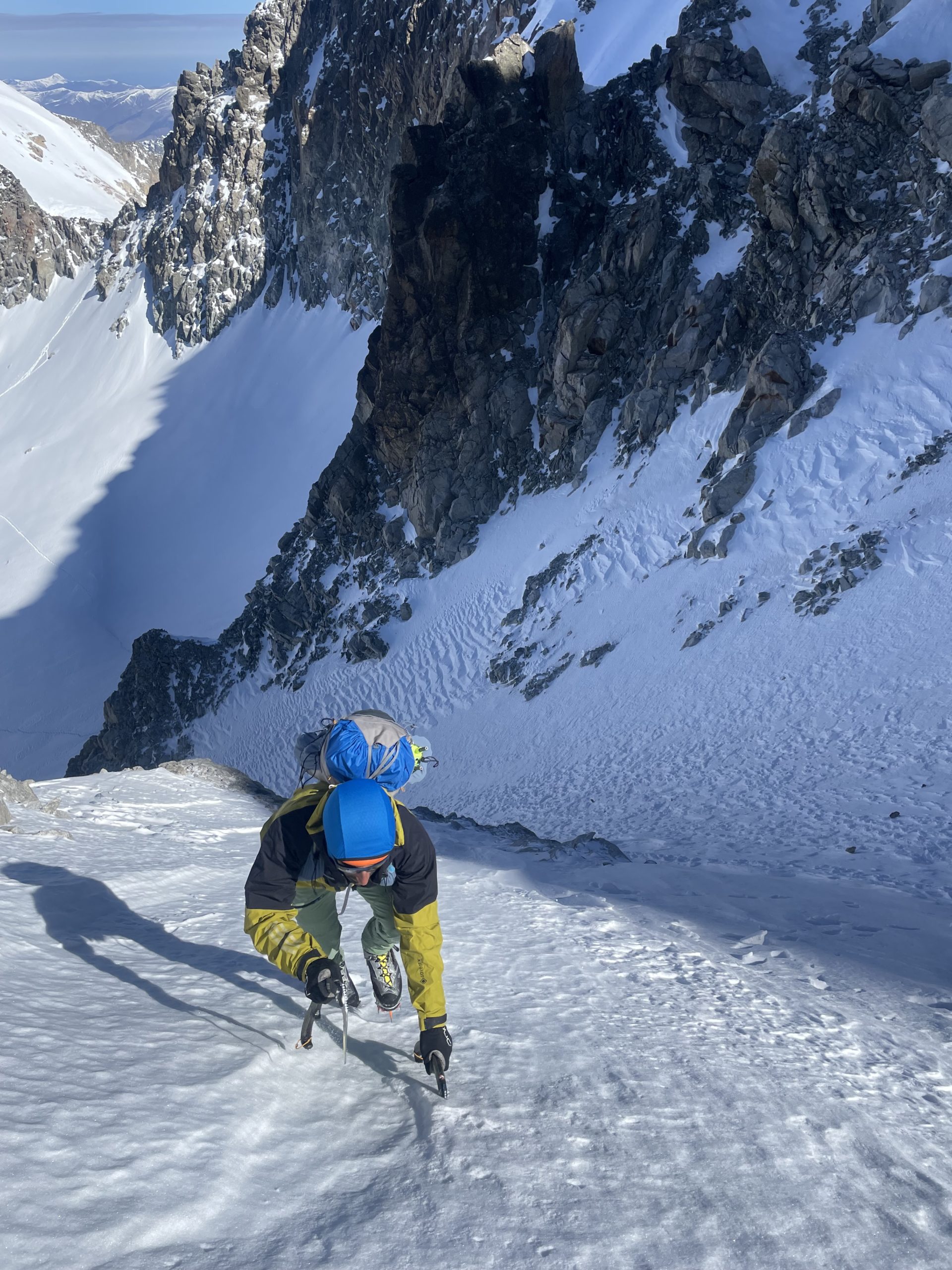 Día de condiciones meteorológicas duras y complicadas de fuerte viento y frio para realizar alpinismo, por lo que finalmente decidí realizar esta travesía para poner a prueba el material en este terreno también.