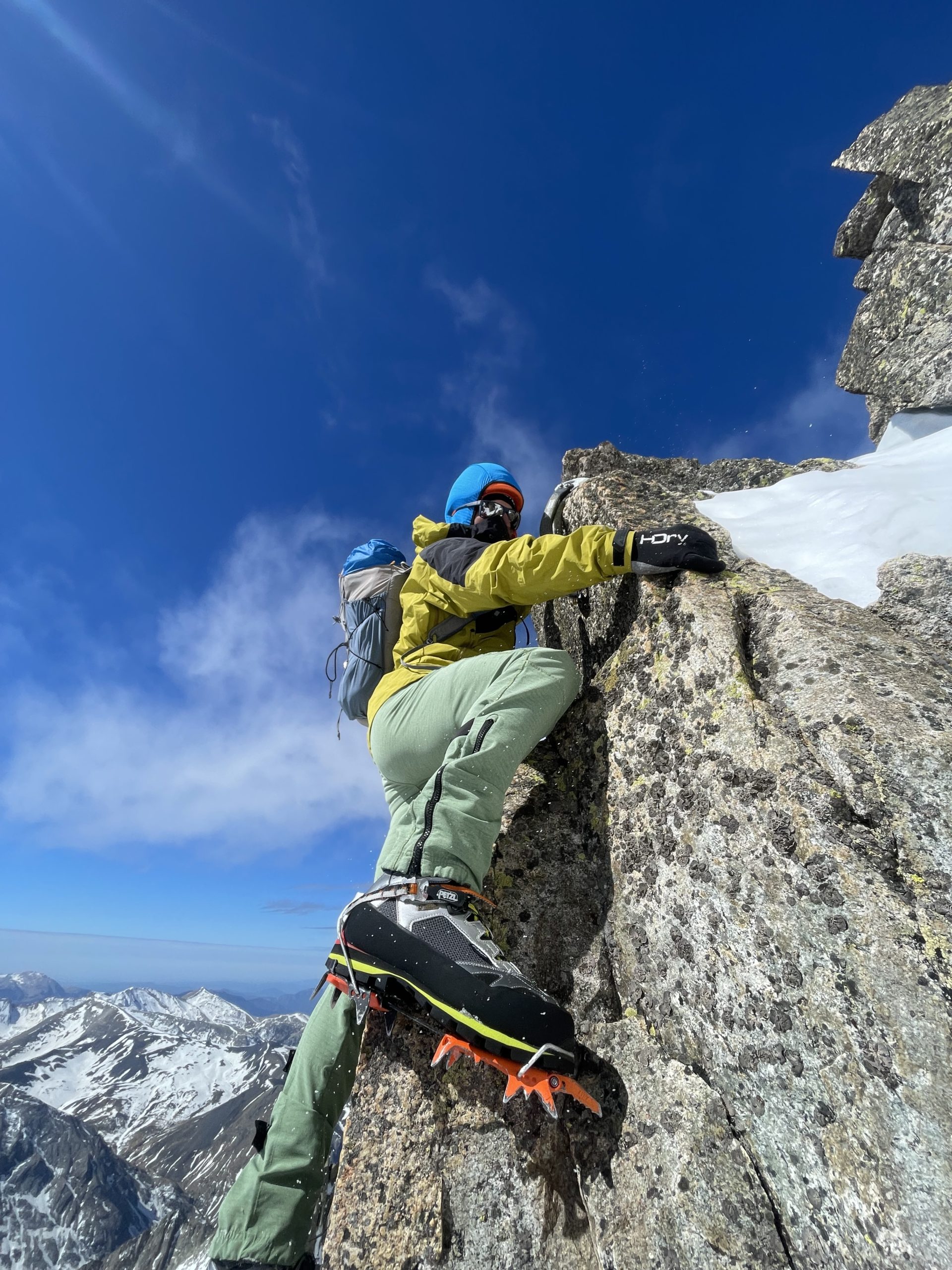 Sin duda una gran adherencia de la suela Vibram. La he probado en algunos tramos de roca quitándome el crampón y la bota ha respondido muy bien.